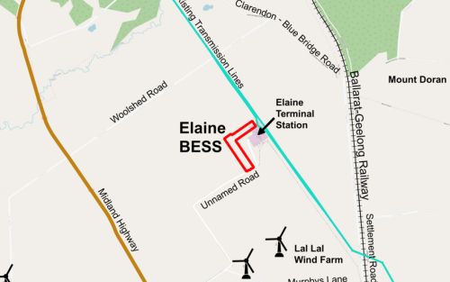 Elaine BESS, currently under construction, will have a capacity of 300MW/1200MWh and provide up to 4 hours of energy storage. Elaine BESS is located 5km north west of Elaine, within the South West Victorian Renewable Energy Zone (REZ) and directly adjacent to the Elaine Terminal Station.